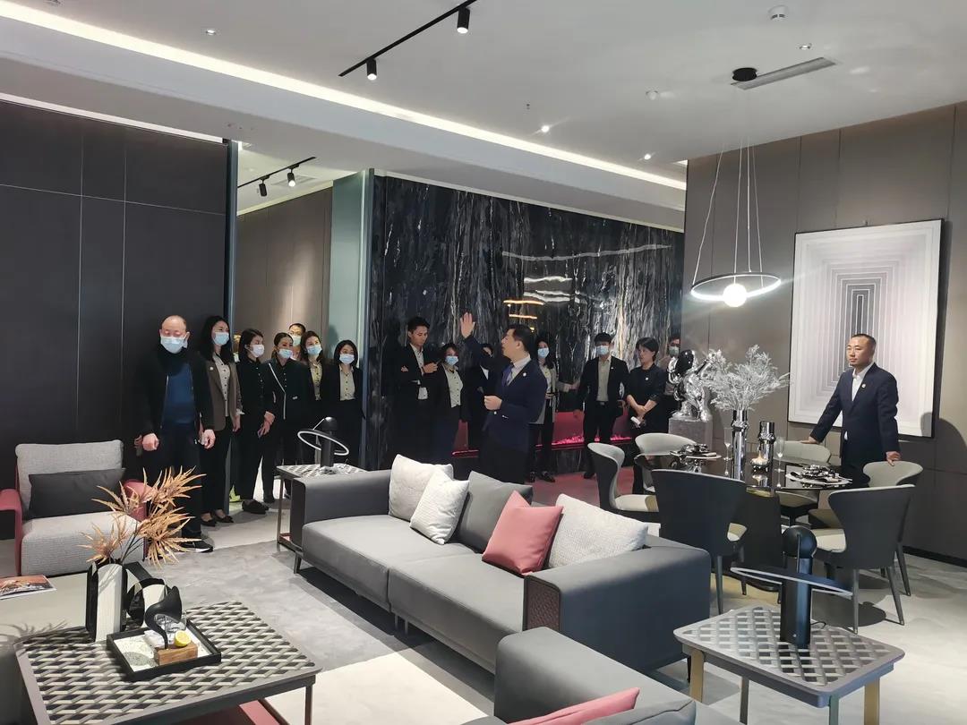 随后,嘉宾们迫不及待地移步至位于集团营销中心三楼的新品牌【西瑞】展厅。在潮味十足的展厅内,集团营销总经理陈玉伟先生围绕着新时代下家居行业的发展趋势,对西瑞产品架构和矩阵进行了深度解析,并为嘉宾们全方位介绍了西瑞的产品定位,材质工艺,以及“整装定制·全案设计”的发展方向。全新的设计视角、个性十足的产品设计引来了现场嘉宾们的驻足品鉴。系列产品的“时尚新锐”、“潮流大气”、“高级质感”、以及极具新青年格调的定制空间赢得了现场嘉宾的由衷赞誉和高度认可。